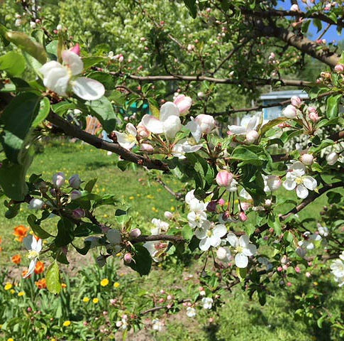 Сад готовится к пробуждению. Появляются первые цветочки.